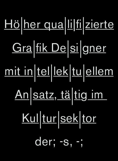 Hierbei teilt sich der Berufsstand in zwei Gruppen auf: Gruppe Eins ist neben Arbeiten im kulturellen Sektor auch im niedriger qualifizierten Konsumsektor tätig, der aufgrund von Mangel an intellektuellem Ansatz oft kein hohes Ansehen genießt. Jedoch kann eine Tätigkeit im Konsumsektor meist nicht vermieden werden, da der Kultursektor praktisch als nicht rentabel bzw. selbstfinanzierbar gilt. Um einen unerwünschten Bezug zum Konsumsektor zu verhindern, verwenden solche höher qualifizierten Grafiker Pseudonyme und verzichten auf ihren Namen im Impressum. |